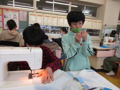 約一ヶ月かけ、トートバッグが完成しました。集中して取り組んでいました。