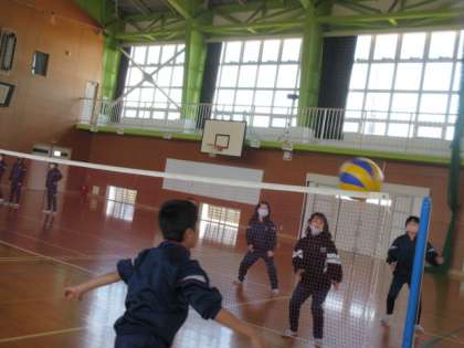 【4年生】総当たり試合 公開日 2021/03/11 更新日 2021/03/11 4年生 体育の様子です。9チーム総当たり戦をしています。 だんだんボールの速度も速くなり、アタックを打つ姿も見られます。 明るい雰囲気で学習しています。