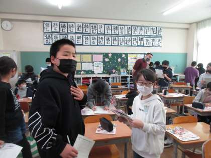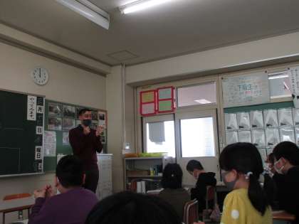 5年生としてALTの先生に教えていただく最後の学習。積極的に関わろうとする姿勢がありました。英語で一生懸命伝えよう、言っていることを分かろう、相手のことを分かろうとする姿勢を、6年生になってももち続けてほしいです。