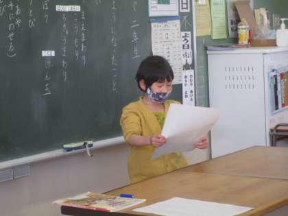 道徳の授業で1年間を通して、できるようになったことを振り返りました。できるようになった裏には友達の協力や家族の支え、先生の応援や声かけがあったことに気づき2年生でも頑張っていきたいという思いを強くしました。