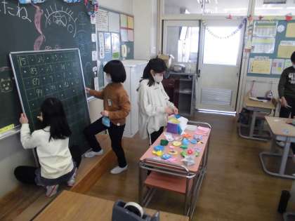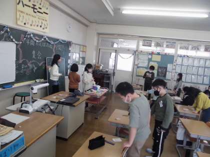 活動の様子です。ビンゴをしています。みんなのためにたくさん景品を作っていましたね。