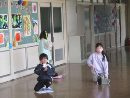 【2年生】すてきな朝の姿 公開日 2021/04/07 更新日 2021/04/07 2年生 登校後、朝のマイタイムの時間に新1年生さんを迎える準備として掃除をしました。自ら進んで掃除をする姿は、とても立派で2年生のお兄さん・お姉さんの自覚が芽生え始めているなと感じました。