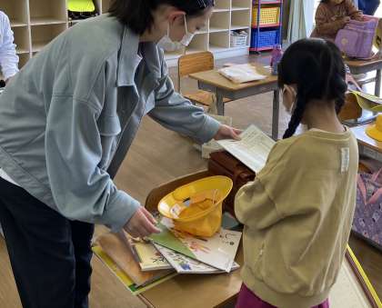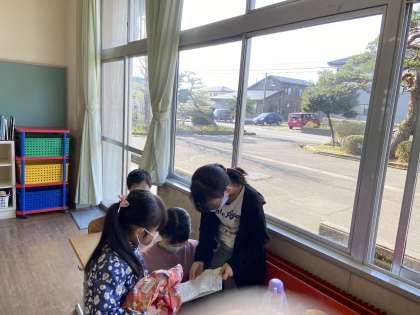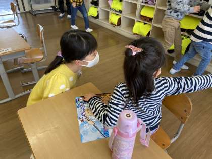 朝の時間、1年生教室に行って朝の準備の手伝いをする子供が多くいました。目線を合わせたり、優しく声をかけたりと、お兄さんお姉さんらしい振る舞いでした。