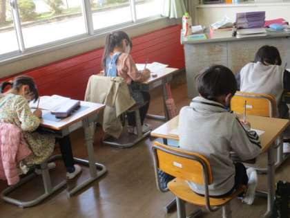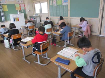 【2年生】姿勢に気をつけて! 公開日 2021/04/08 更新日 2021/04/08 2年生 書写の時間に書くときの姿勢を気をつけて漢字の練習をしました。足の裏をぴったりつけて背筋を伸ばし鉛筆の持ち方に注意しました。
