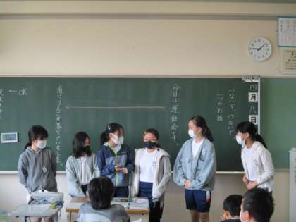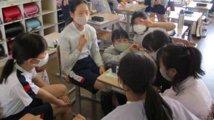 始めと終わりの文章を指定し、お話づくりをしました。友達の発言をよく聞いているからこそ、話をつなぐことができていました。グループの特色がよく現れていて、楽しかったですね。