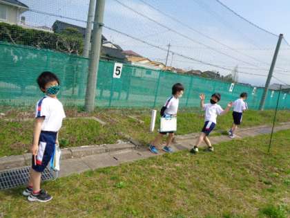 ダンゴムシや蛙を発見した子もいました。山に登ってみたり、池を覗いたりしながら、植物や生き物をじっくり探し、観察しているようでした。