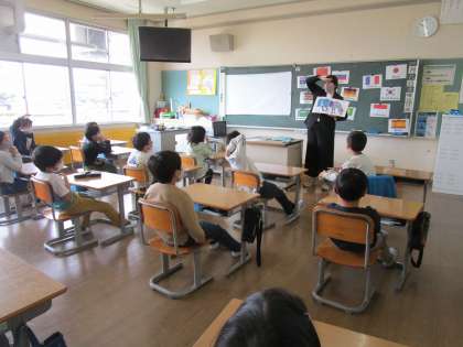 子供たちは元気な声で国の名前を言ったり、クイズを楽しんでいました。次回の外国語活動も新しいことにどんどん挑戦してほしいです。