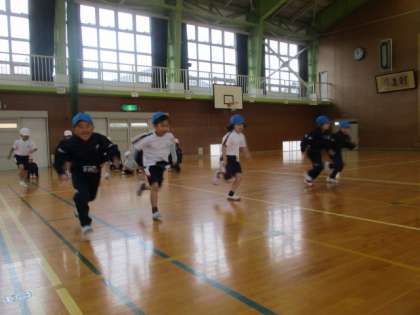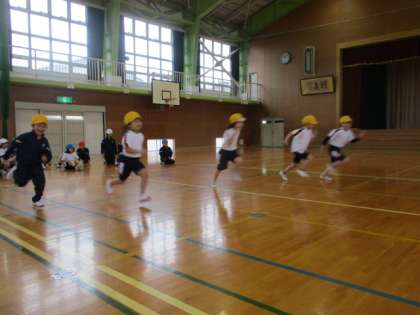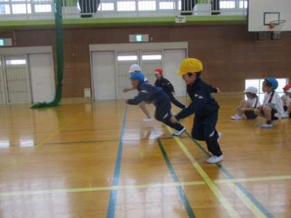 運動会に向けて走る力を鍛えています。体育の時間にスタートの練習とバウンドボールを使った練習をしました。
