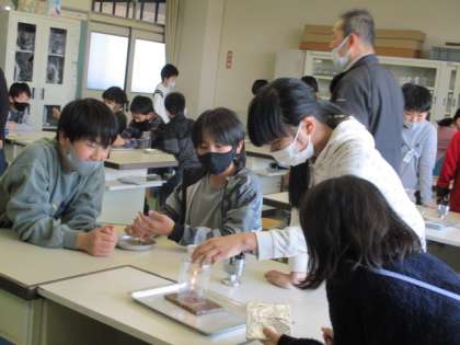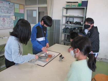 初めての実験をしました。火を扱うので緊張もしていたようです。明日も安全に気を付けて実験しましょう。