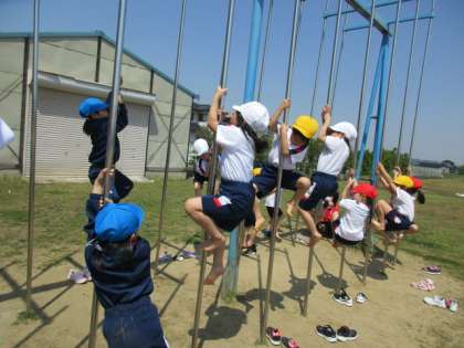【1年生】からだをうごかそう! 公開日 2021/04/21 更新日 2021/04/21 1年生 体育の様子です。準備体操ではダッシュやスキップ、サイドステップなど多様な動きをしました。後半はのぼりぼうにチャレンジし、体をたくさん動かしました!