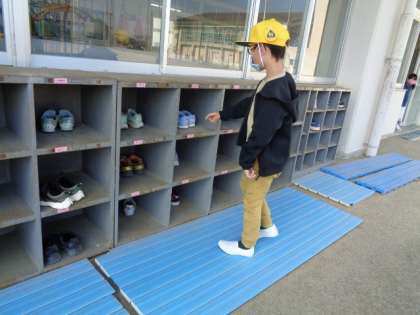 【1年生】一人一役 公開日 2021/04/23 更新日 2021/04/23 1年生 1年生は先週から一人一役を始めました。毎朝登校後「靴揃え」の子がクラスの下足箱のズックを揃えてくれています。素敵な姿を見られて嬉しいです。ありがとう。