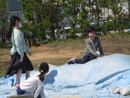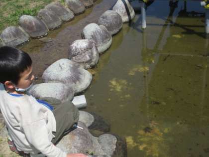 休み時間にひなたぼっこをしている人、神保っこワールドで生き物を見つけている人を発見しました。