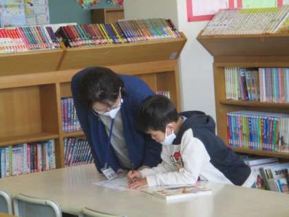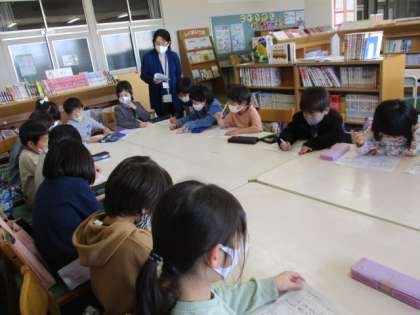 5時間目の国語の時間に司書の横井先生から図書館や図書室の本の扱い方・利用の仕方について説明を受けました。