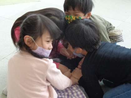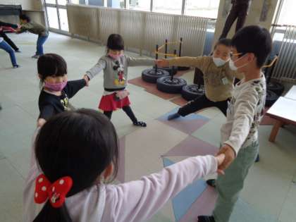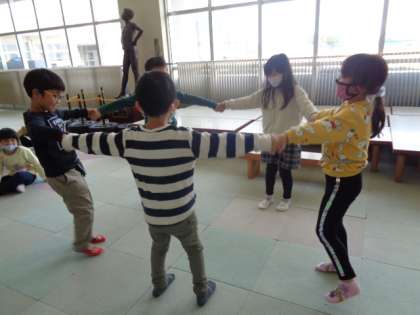 「ひらいたひらいた」を団のみんなで歌いながら開いたり閉じたりしました。みんなと一緒に楽しそうでした。
