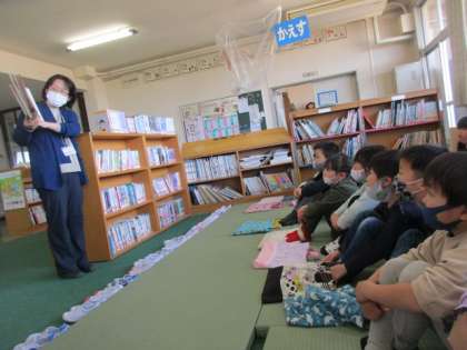 【1年生】図書室の時間 公開日 2021/04/30 更新日 2021/04/30 1年生 図書室の時間の様子です。最初の頃に比べて、自分の読みたい本を的確に選べるようになってきました。読み聞かせも楽しんで聞いていました。