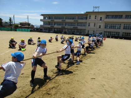 空を見るようにして、後ろに体重をかけて綱を引きました。
