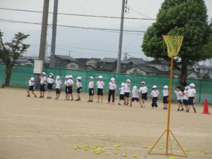 玉入れの練習を頑張っています。今日は本番と同じ動きの練習をしました。玉が少しでも多く入るよう明日も頑張りましょう!