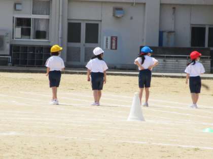 今日ははじめての運動会予行練習でした。暑い中、午前中いっぱい頑張りました。はじめてのことで戸惑うこともありましたがいろいろな学年の子たちに助けられながらやりとげることができました。