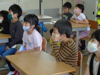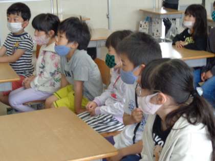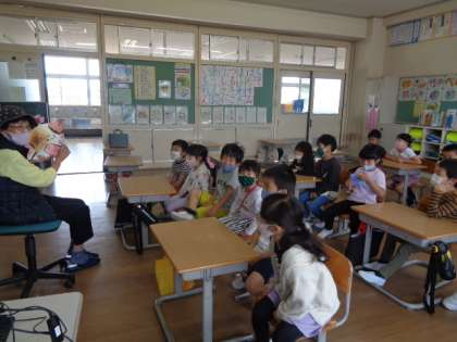 読書ボランティアの方に絵本を2冊読んでいただきました。子供たちは「おもしろい本ばっかりだね」とつぶやいていました。