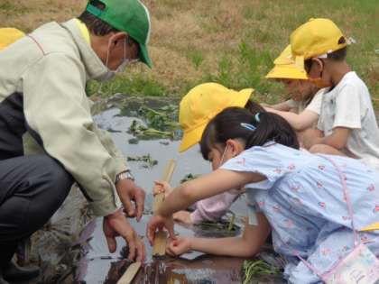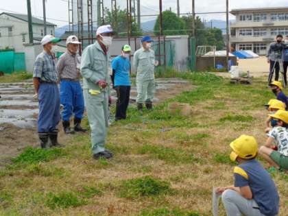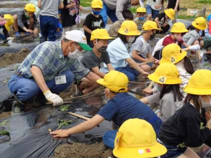 神保老人クラブの方の指導のもと、サツマイモの苗を200本植えました。秋に収穫するのが楽しみです。水やりやお世話をがんばりましょう。