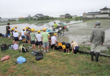 田植え体験 公開日 2021/05/18 更新日 2021/05/18 5年生 手作業での苗植えの後、機械で苗を植えるところを見学しました。一瞬で、たくさんの苗が まっすぐきれいに植えられていく様子を観察しました。