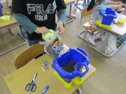 【1年生】あさがおのたねをうえたよ 公開日 2021/05/19 更新日 2021/05/19 1年生 あさがおのたねを植えました。土や肥料を入れるのは大変でしたが無事植えることができました。終わった後に全員で協力して片付けをしていた姿がとてもすてきでした。