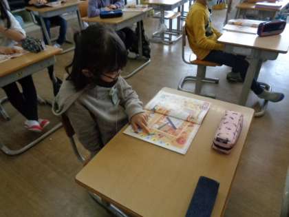 外国語活動では、数の数え方を知りました。数字を使ったゲームをして、友達と楽しく関わり合いながら数を数えました。
