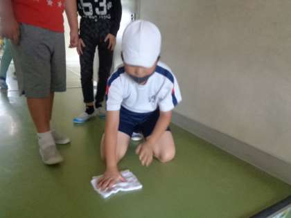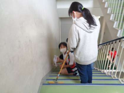2回目の避難訓練。ベルと同時に動きを止め、「おはしも」を守って避難することができました。避難訓練後、砂だらけの階段を進んで掃除してくれる5年生に出会いました。素敵な姿にとても嬉しく思いました。