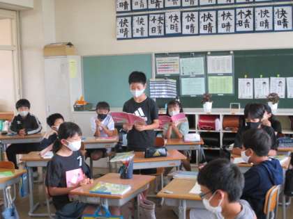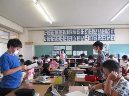 【6年生】筆者に共感するところの伝え合い 公開日 2021/05/25 更新日 2021/05/25 6年生 「時計の時間と心の時間」の学習では、筆者の主張、事例に自分が共感した思いを伝え合いました。どんどん自分の思いを伝えようと、がんばっています。