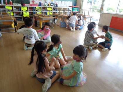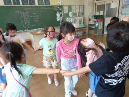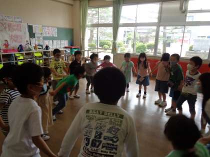 学活の時間に「ぽかぽかぐんぐん」のクラスにしていこうというお話をしました。今日は、心が温かくなる「ぽかぽか言葉」をたくさん使って、クラスのみんなでゲームをしました。初めて、クラスの全員で「なべなべ底抜け」を成功することができました!