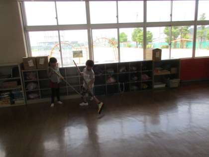 【1年生】そうじ 公開日 2021/05/31 更新日 2021/05/31 1年生 そうじの様子です。4月頃と比べるとそうじの仕方がどんどん上手になっています。今日は初めての担当場所でしたが声をかけあって時間内にきれいにすることができました。自分たちで考えて動こうとする姿がとてもすてきでした!