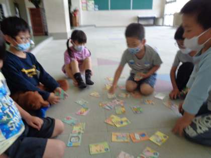 登り棒をしたり、かるたをしたり、上級生と遊んだりと、思い思いに休み時間を楽しんでいます。