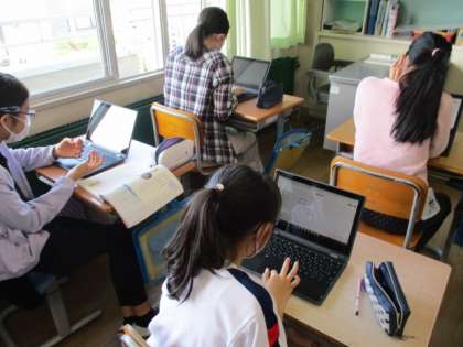 国語科の「たのしみは」の学習では、自分が楽しいと思う瞬間を短歌にして表します。真剣にスライドをつくった子供たち。近日中に鑑賞し、コメントし合います。