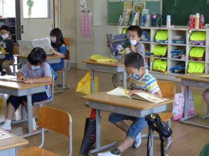 一人で本に集中できる子が少しずつ増えてきました。読書が大好きな子になってほしいと願っています。