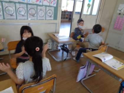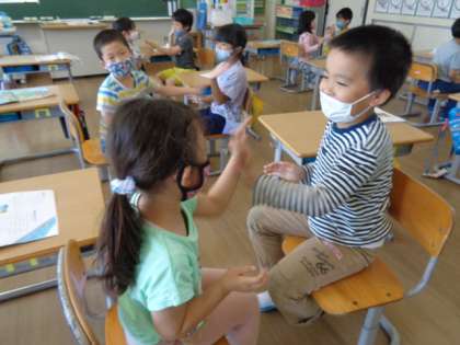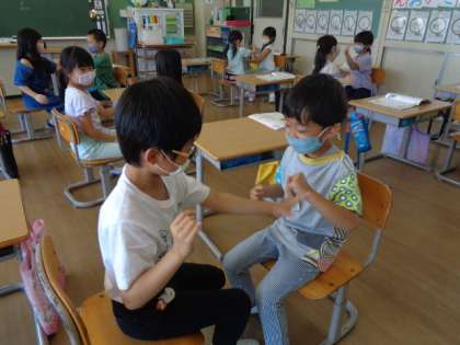 友達と一緒にリズム遊びをしました。ペアの友達を次々と替えて楽しく遊びました。またやりましょう!
