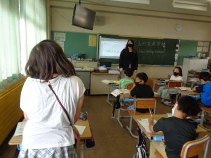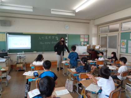 外国語活動では、漢字の画数を使ったゲームをしました。外国語と漢字を一緒に使うことを子供たちも楽しんでいました。