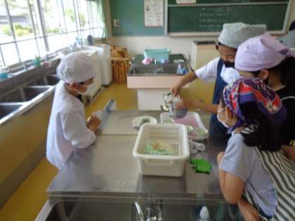 家庭科では、お湯を沸かして急須でお茶を入れました。数種類のお茶の葉を使って、飲み比べをしました。「おいしい」「苦い」と感想を言っていました。担任も子供たちがいれてくれたお茶を飲みました。旨味が出ていてとてもおしいかったです。ありがとう。