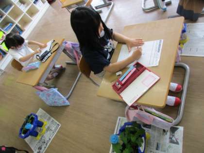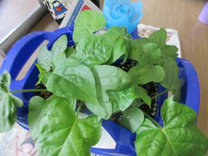 あさがおの観察をしました。「先週と比べてどう?」と尋ねると、自分のあさがおの成長を語る子供たちがたくさんいました!最初の子葉からどんどん葉の数が増えていき、これからどんな風に成長していくのかますます楽しみになってきています。