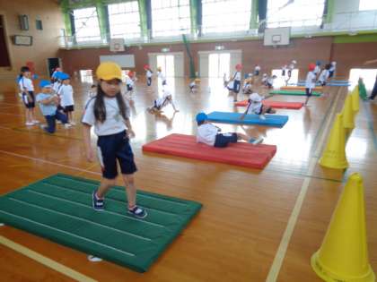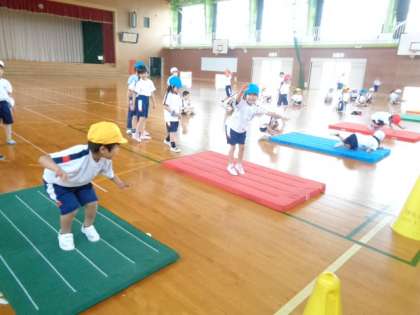 木曜日はスポーツテストです。今日は立ち幅跳びの練習をしました。