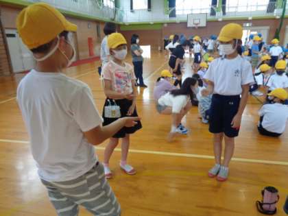 1〜6年生までの縦割りグループになる「なかよし班」が発足しました。今日は自己紹介をしたあと、幸せじゃんけんをして遊びました。どんどん仲を深めてほしいです。