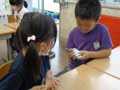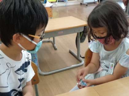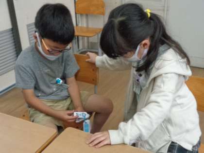 ペアの友達とたしざん計算カードの練習をしました。もうすぐ引き算カードに入ります。足し算に磨きをかけられるように頑張りましょう!