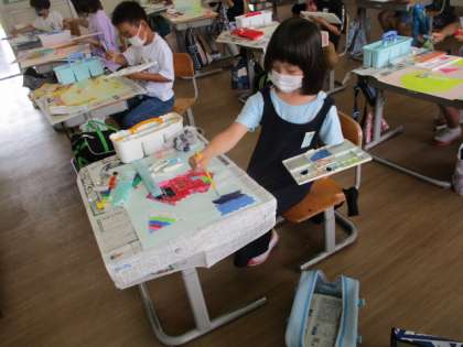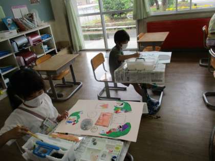 【2年生】ふしぎなたまご 公開日 2021/06/14 更新日 2021/06/14 2年生 図工の学習で、先週描いたふしぎなたまごを割って中から何が出てくるかを想像して絵を描きました。たまごの中から恐竜やお菓子、かわいらしい生き物等々想像力豊かに色々な物を生み出していました。