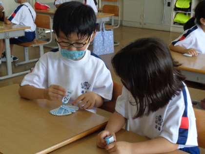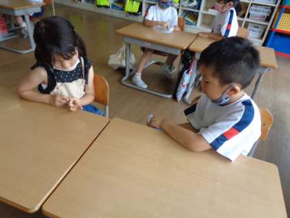 足し算の計算カード、とても速くなってきました。今日も友達と練習しています。