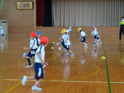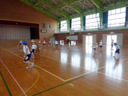 「ぐるぐる鬼」「ねことねずみ」、そして新しい「玉入れ鬼」を教えてもらいました。どの鬼ごっこもスリル満点で楽しいですね。