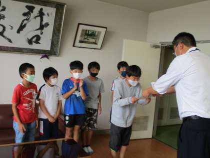 サッカーの受賞伝達を行いました。今回の結果を胸に、さらにがんばってくれることでしょう。今後の活躍を期待しています。