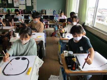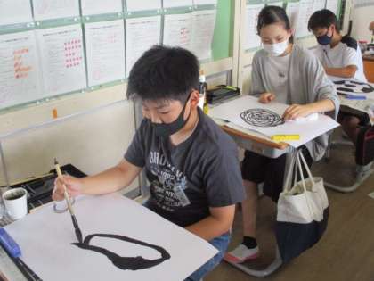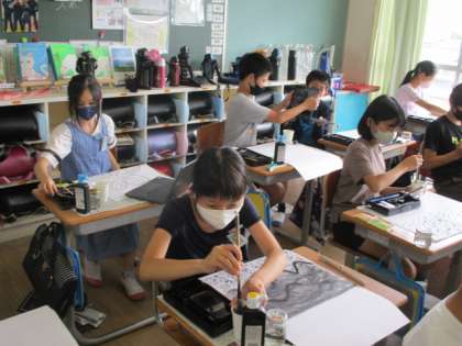 にじみ、かすれ等、表現を工夫しながら、一人一人の描きたいものを描きました。来週もう一度挑戦します。