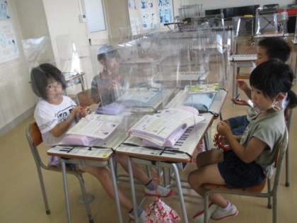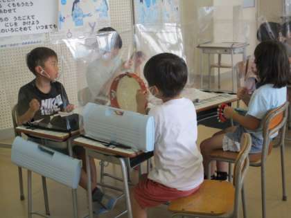 【2年生】この空 とぼう 公開日 2021/07/01 更新日 2021/07/01 2年生 音楽のリズムを重ねて楽しむ学習では、2びょうしにのってグループごとに楽器やリズムを工夫して演奏会に向けて練習をしています。