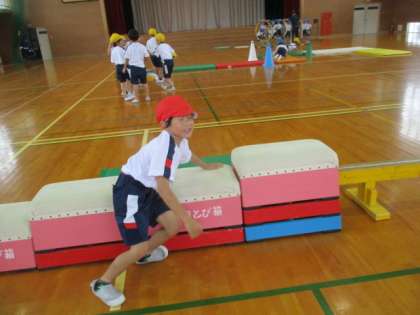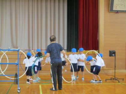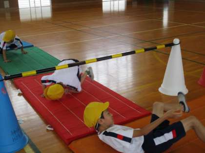 あいにくの雨でみんなが楽しみにしていたプール学習は中止になりましたが、元気に体育館で運動しました。