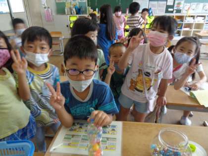 【1年生】ごほうびビー玉 公開日 2021/07/15 更新日 2021/07/15 1年生 朝の奉仕活動(ピカピカタイム)を頑張り続ける子供たちのおかげで、またまたごほうびビー玉がいっぱいになりました。5回目です。