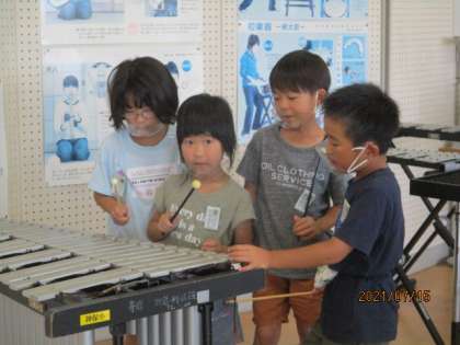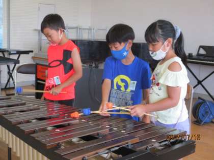 1学期最後の音楽は、1学期に学習した歌を歌ったり、楽器にふれたりしました。